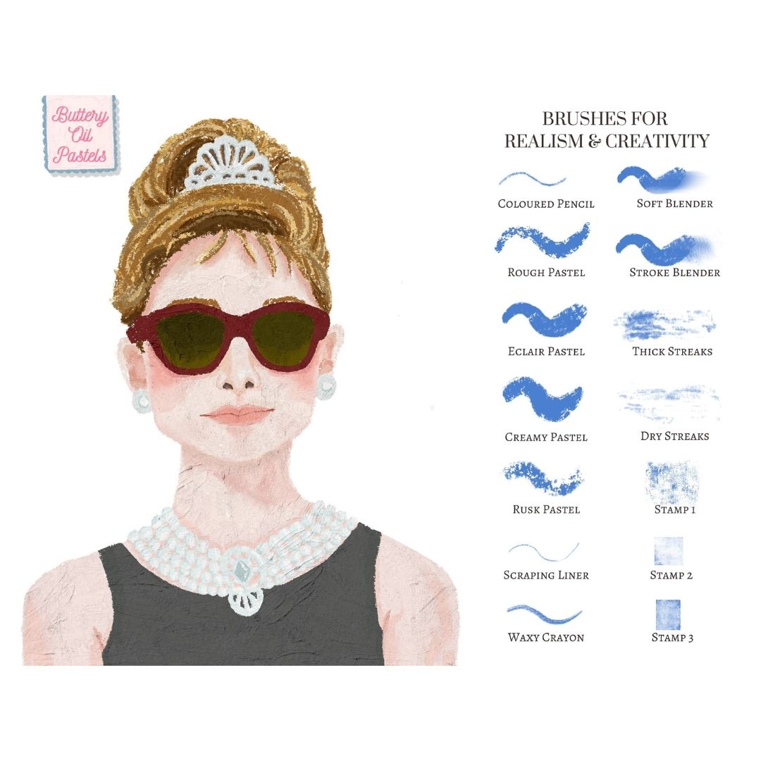 - 22 oil pastel brushes with smooth, creamy strokes