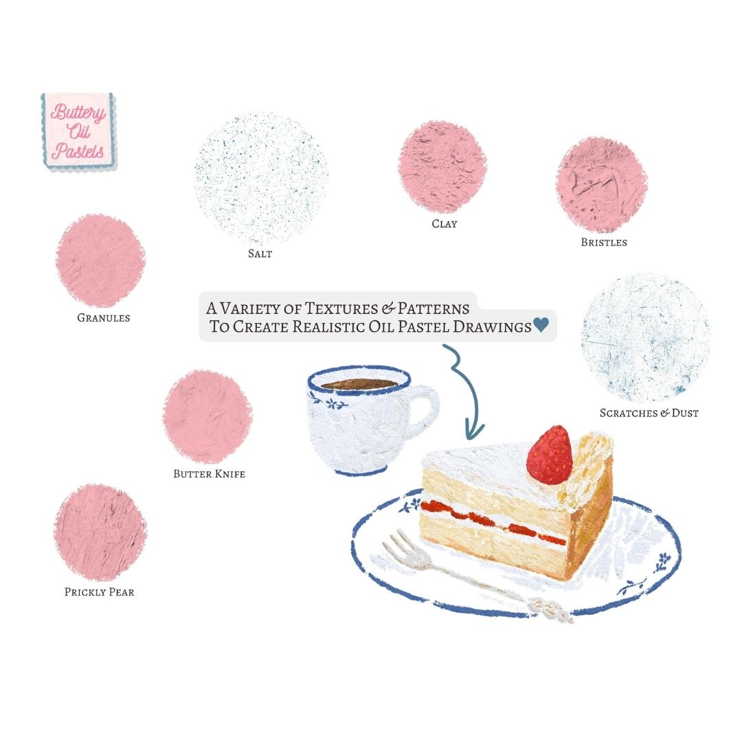 A soft and creamy Procreate oil pastel brush set designed to create rich, buttery textures with a warm, hand-drawn feel.